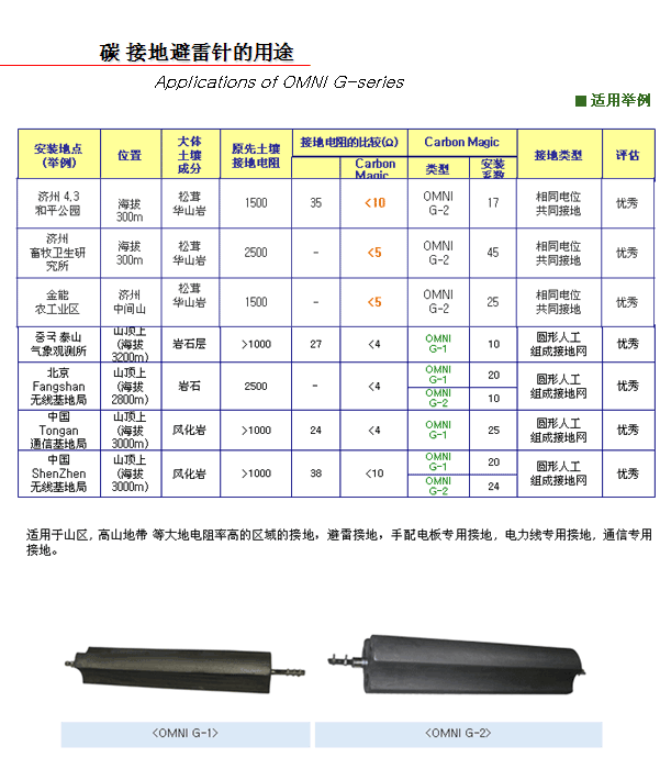 “Carbon Ground Magic”低電阻碳接地模塊是以現(xiàn)有的特殊碳材料組成、而且比同等尺寸的金屬材料,能用十幾倍的單位面積擴(kuò)大效果和異常電流分析效果,增強(qiáng)雷電流的釋放,因電解層擁有強(qiáng)有力的除濕能力和維持濕度能力,很大程度上減少接地本身和土壤之間的接觸電阻。