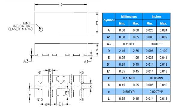 DFN2510P10封裝:ULC3304P10系列
