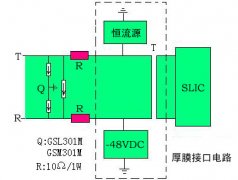 ◇常見的SLIC保護電路中,均采用PTC作第一級過流保護,然后并聯(lián)ST的3端半導體防雷管作過壓保護。該保護方案不僅成本極高(10元以上),而且實際保護效果不佳。在10/700us電壓波形下2KV沖擊時,PTC已被擊穿斷路。 我公司實際經(jīng)驗推薦的防護方案如上圖,BENCENT專利產(chǎn)品GSL301M(插件)GSM301M(貼片)并接在接口電路最前端,電阻和PTC串接在電路中用于限流。該方案價格低廉(約6元),而且10/700us波形下雷擊測試4KV,設備無損害。--達到ITU-TK20/K21的最高雷擊標準。